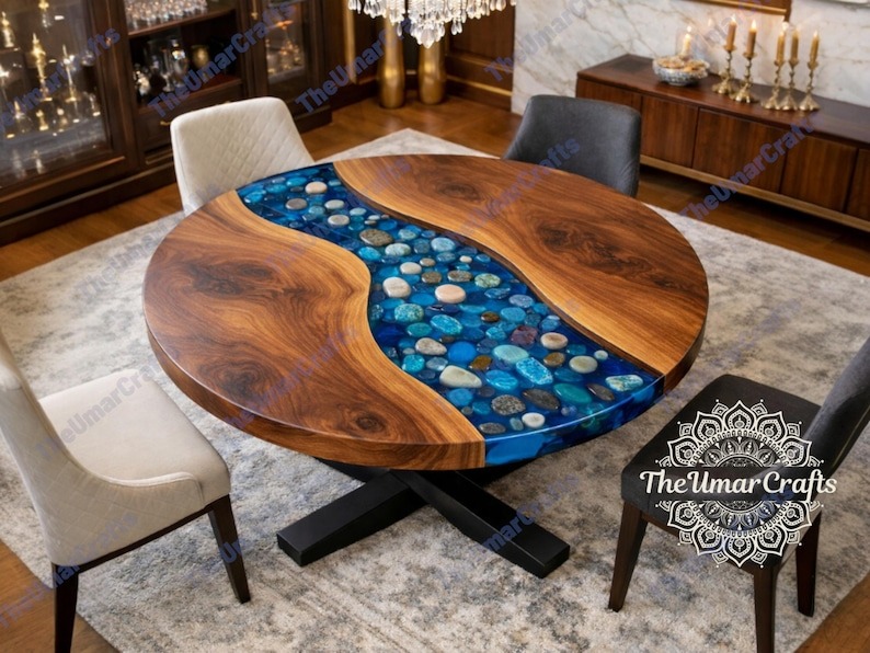 Handmade Epoxy Round Table Top – Luxury Floral Marble Inlay Design Coffee / Side Table
