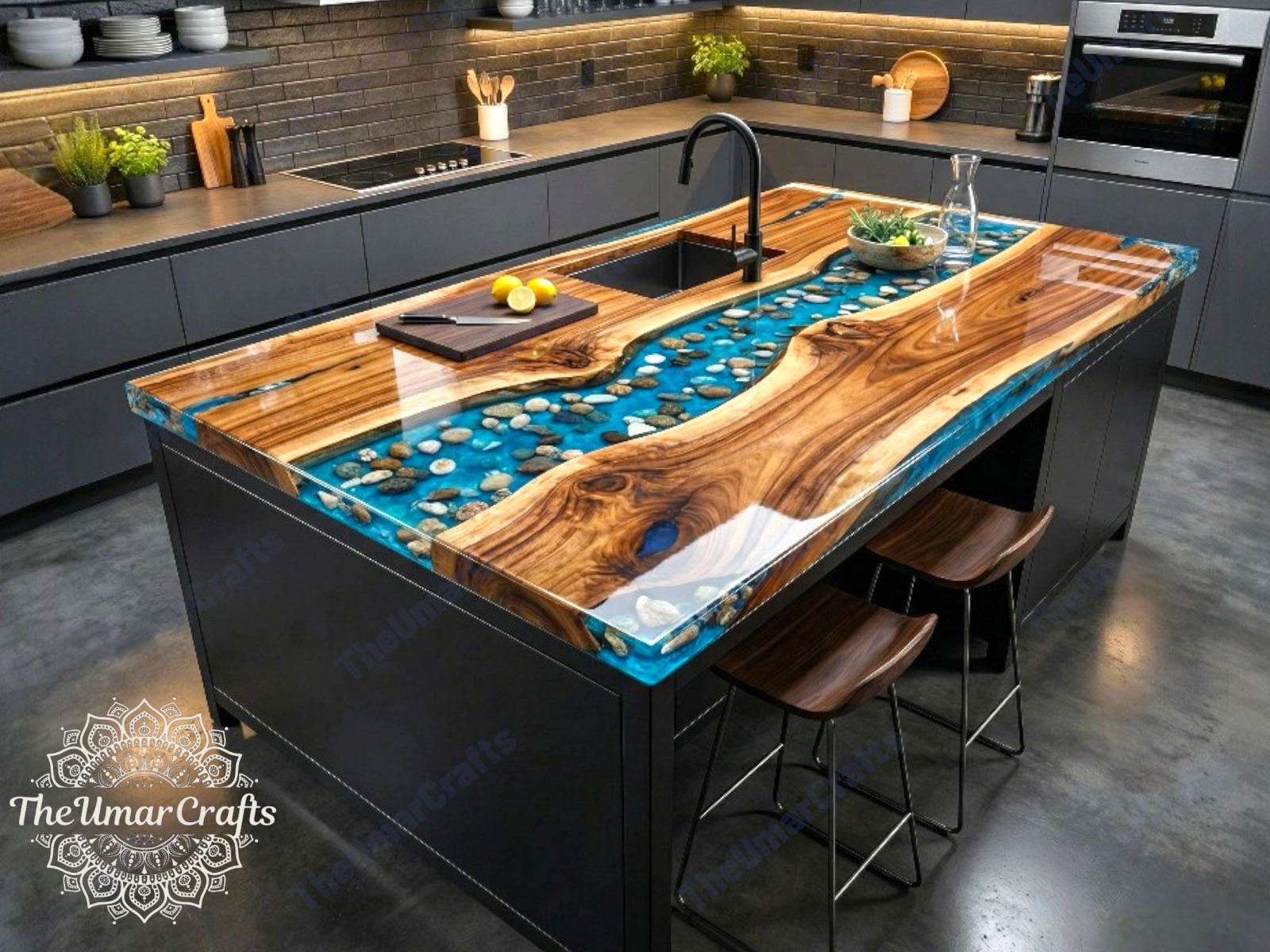 pebble epoxy river kitchen counter top